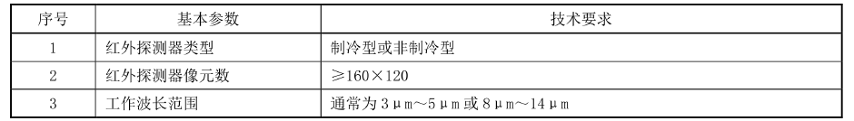 安防热像仪的结构设计应符合人机工程的特点,硬件设计应遵循系列化、标准化和模块化原则,应 进行可靠性、维修性、易用性、安全性和电磁兼容性设计。安防热像仪的红外探测器基本参数应符合表 1 要求。