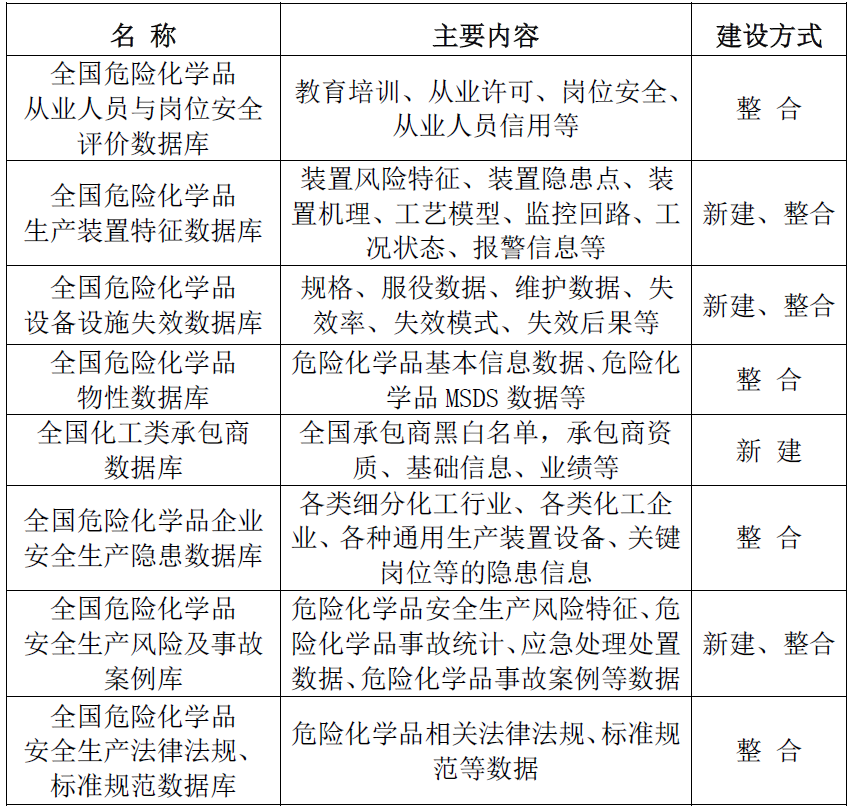 (1) 企业安全信息数据库建设与数字交付。推动企业建立完善企业安全信息数据库,纳入化学品安全技术说明书(MSDS)、工艺技术、设备设施、设计变更、施工安装、检维修、检测检验、评估评价、特殊作业、人员资质培训、承包商管理、值班值守、巡查巡检、隐患排查治理、制度标准等信息并及时动态更新,整合推动企业资源计划(ERP)、制造执行系统(MES)、 供应链管理(SCM)等相关系统“上云上平台”,为实现数字交付和数字孪生奠定基础。